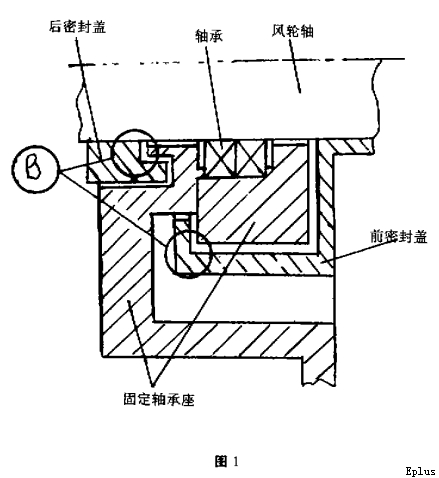 在整個(gè)氣流篩粉機(jī)密閉運(yùn)轉(zhuǎn)的大系統(tǒng)中,風(fēng)輪軸承處在粉狀物料直接通過的密閉空間,由于粉狀物料粒度細(xì)小.很容易進(jìn)入風(fēng)輪軸承內(nèi)部使軸承很快磨損,這樣就產(chǎn)生了軸承的密封問題。實(shí)踐證明,目前使用的各種密封方法解決不了這一問題。為此,我們專門設(shè)計(jì)了能夠解決這一問題的風(fēng)輪軸承座,經(jīng)過多次實(shí)驗(yàn),圓滿解決了這一問題。如圖l所示:風(fēng)輪軸承座由固定軸承座和前、后密封蓋組成。在生產(chǎn)過程中,由于風(fēng)輪軸承前、后密封蓋的高速旋轉(zhuǎn)打破了軸承內(nèi)、外大氣壓強(qiáng)的平衡,處于浮游狀態(tài)的物料微粒,在變動(dòng)的大氣壓強(qiáng)作用下,會(huì)不斷的通過軸承前后密封蓋與固定軸承座之間的縫隙進(jìn)入軸承內(nèi)部,使軸承研損。同時(shí)實(shí)驗(yàn)還證明,如果在軸承前、后密封蓋之間加裝密封圈等密封裝置,由于軸承座與前、后密封蓋之間處于相對(duì)高速旋轉(zhuǎn)的動(dòng)態(tài),浮摘芋狀態(tài)的物料微粒還是要向軸承內(nèi)部滲透,同樣會(huì)使軸承研損。