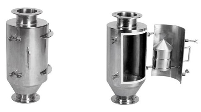 該產品內部磁芯磁力強大,抓牢性好,可以有效過濾顆粒狀、粉末狀物料里的鐵磁性雜質。進出口可通過法蘭或快速接口方便的安裝在生產線上。